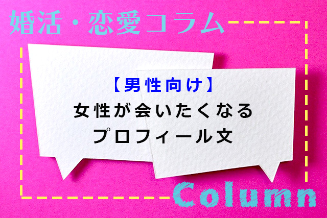 ※女性向けの「男性が会いたくなるプロフィール文の書き方」はこちらの記事で紹介しています。